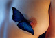 Привлекательно выглядит эта девушка с бабочкой обнажённой позирующая на кровати!