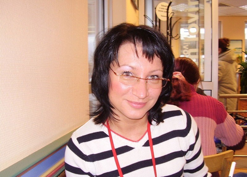 Милая женщина с красивой улыбкой , очень её подходят очки и чудесные волосы у неё!