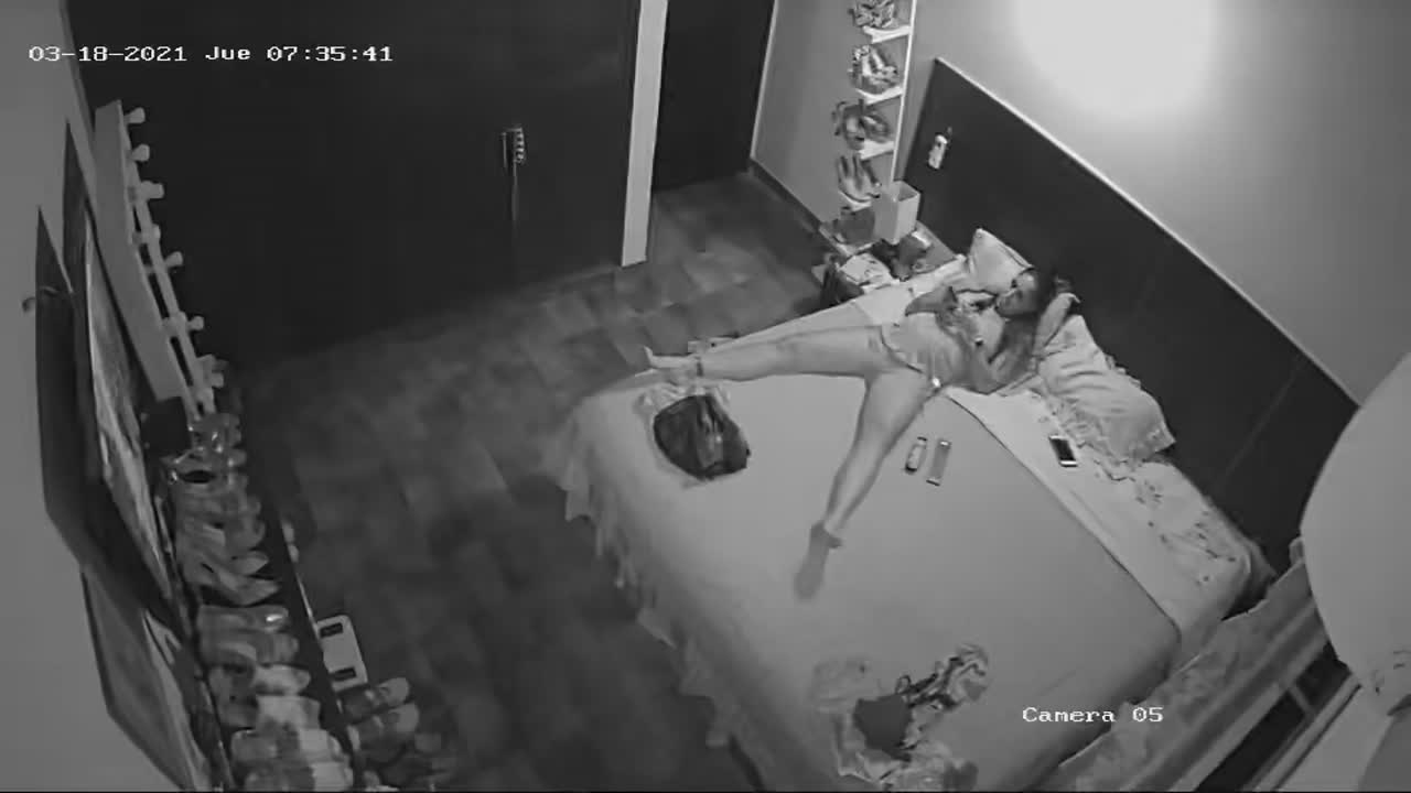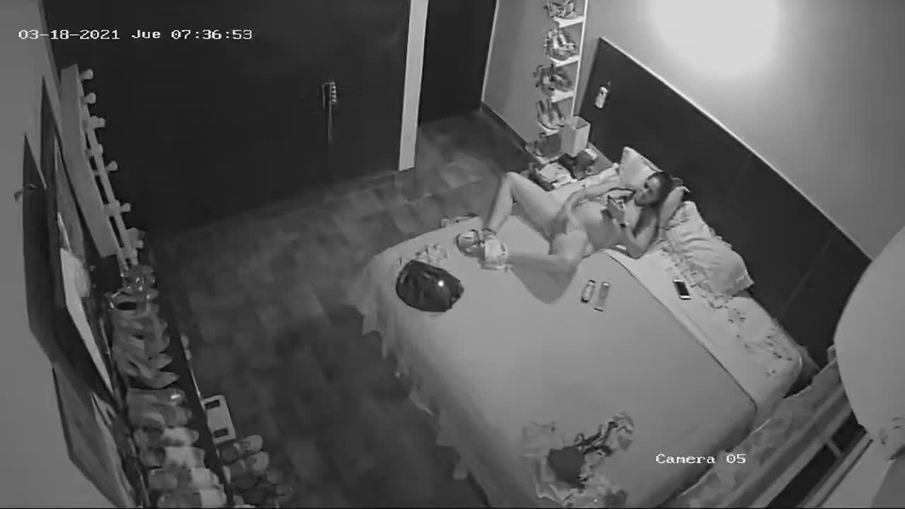 Мастурбирует на кровати
