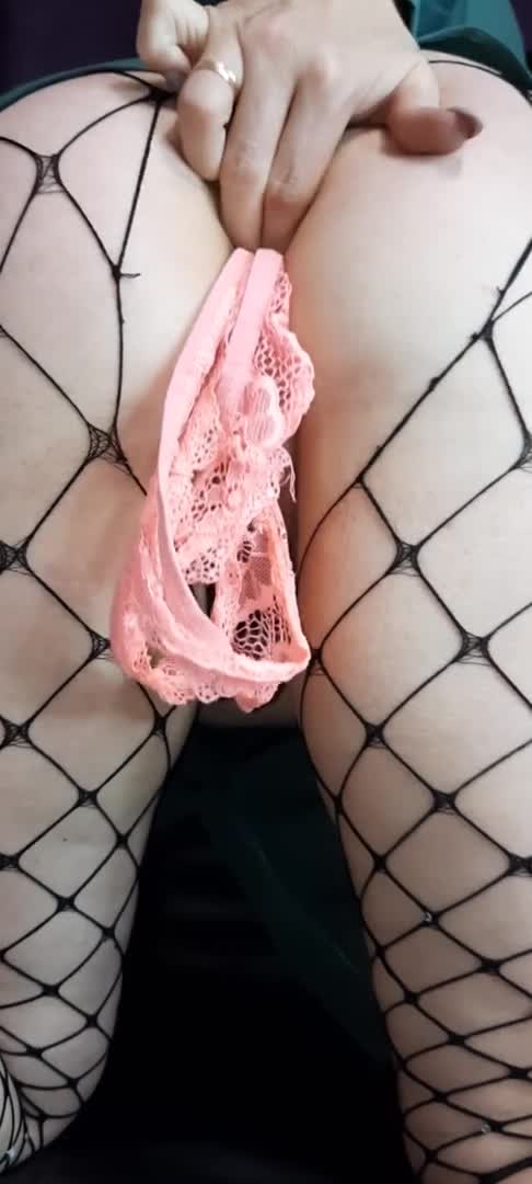 Анечка засовывает в свою рабочую попку трусики, а потом вытаскивает из нее.