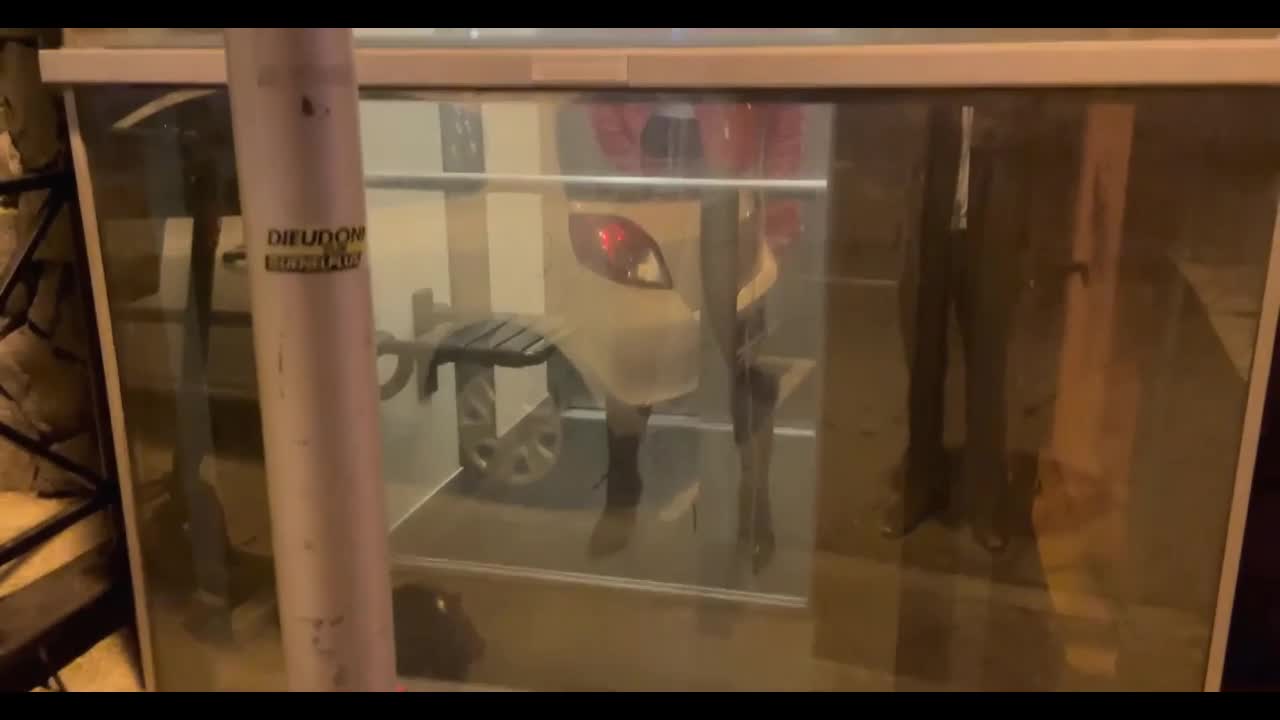 Зрелочка катается в лифте с остеклением и теребит свою сочную на лестнице