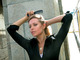 наша взрослая девушка из гламурных 00-х. фото модели в одежде-белье. мне ее прозрачная блуза с деловым костюмом понравилась)