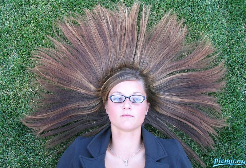 прикольненько волосы она разложила на травке