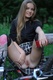 Очень привлекательно позирует сия юная велосипедистка без трусишек на велике позирующая!