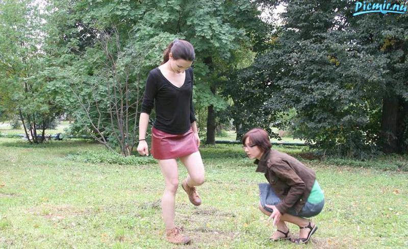 Интересно выглядят подружки веселушки напару в парке писающие!