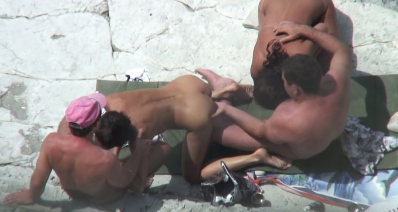 Две пары на некотором расстоянии друг от друга...ласкаются, инициатор - один из парней подводит свою девушку ко второй паре и очевидно спрашивает разрешения расположится рядом. Далее события разворачиваются вполне понятным образом... Только вот одна девушка не захотела ласкать соседа...