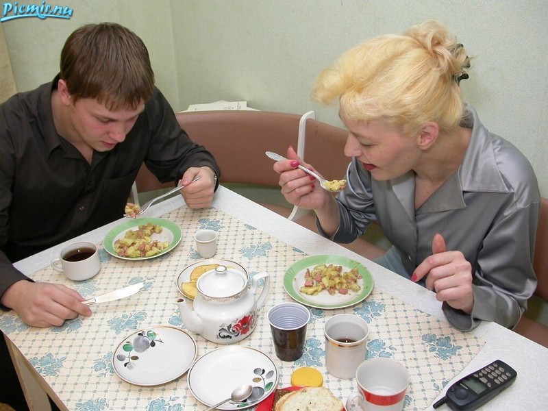 Покормит студента вкусно. Вот он и отрабатывает.