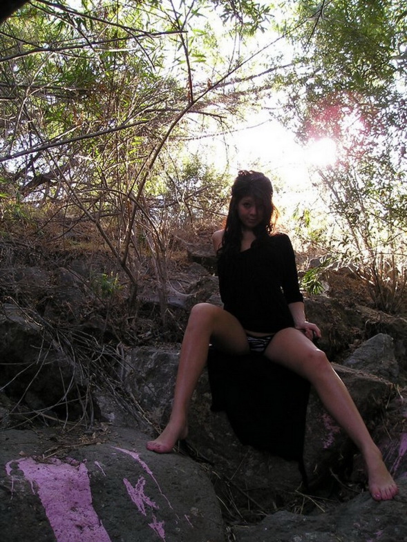 Весьма удачно сия милая малышка своей пиздёнкой на природе посветила!