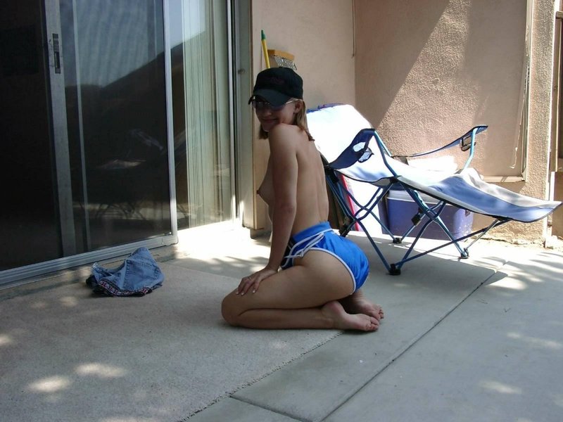 Впечатляюще девка позирует догола раздевшись на террасе!