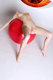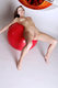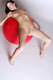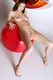 Очень красиво стройная красотка с аккуратно выбритой вульвочкой с красным шаром позирует!