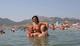 Очень интересное занятие нашло это трио нудистов в море купающееся!