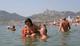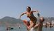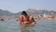 два мужчины на нудистском пляже купаються в море и подбрасывют девушку в воду да так высоко приятного просмотра