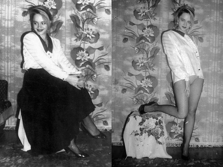ч\б фото на пленочный фотоаппарат. процесс проявки - печати - не понять этого в эру современной цифры. в те года само обладание фотоаппаратом, а уж умение провести весь процесс до снимков - было дано не каждому. творческий подход - и получали те снимки которые сейчас уже ретро. автору респект, а модели тем более.