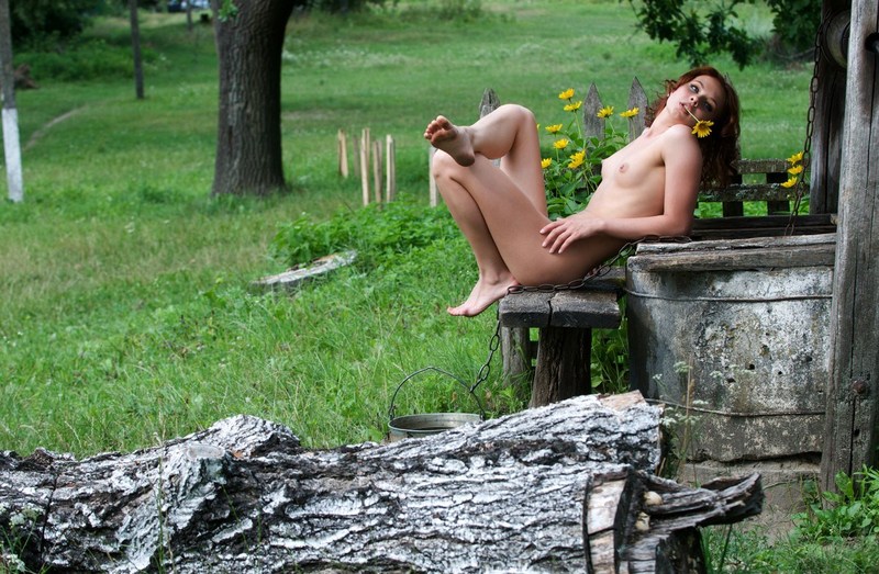 Весёлая юная позёрша прикольно выглядит голышом у колодца снимаясь!