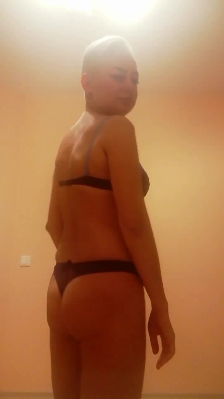 Сексуальная дамочка с короткой стрижкой сняла с себя комплект нижнего белья и покрутилась голая