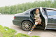Девушка писает из остановившейся на трассе машины