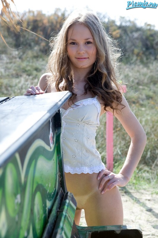 Весьма мила эта девчушка смело без трусишек в интересном месте позирующая!