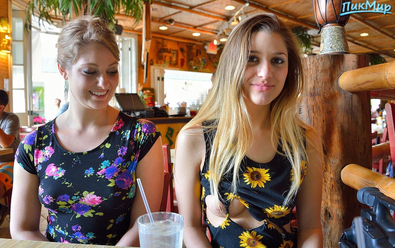 Две распутные подружки любят хвастаться своими сиськами и кисками на публике.