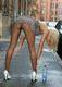 как игриво демонстрирует свою фигурку в колготках без трусиков
