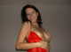 Её красноватые волосы неплохо сочетаются с её красным прикидом!