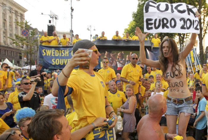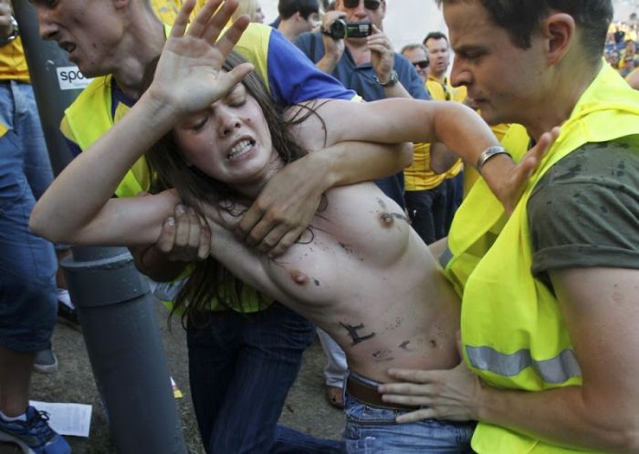 Вот она, жестокая УКРАИНСКАЯ милиция. Народу - футбол, а ментам - сиськи!