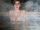 Симпатичная девочка в термальном бассейне немного оголились перед объективом.