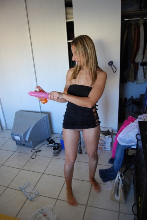 Так она внимательно рассматривает свой дилдос.