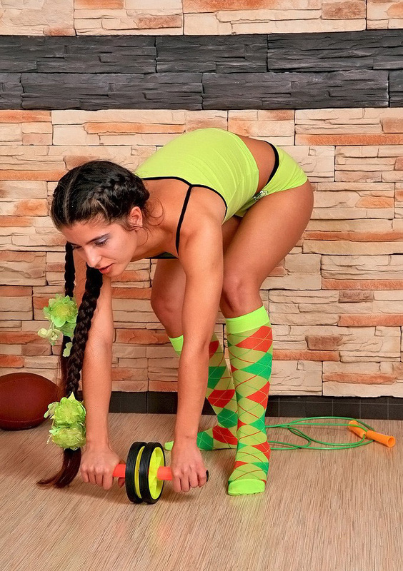 Тренированная девушка,видно что занимается спортом с удовольствием.