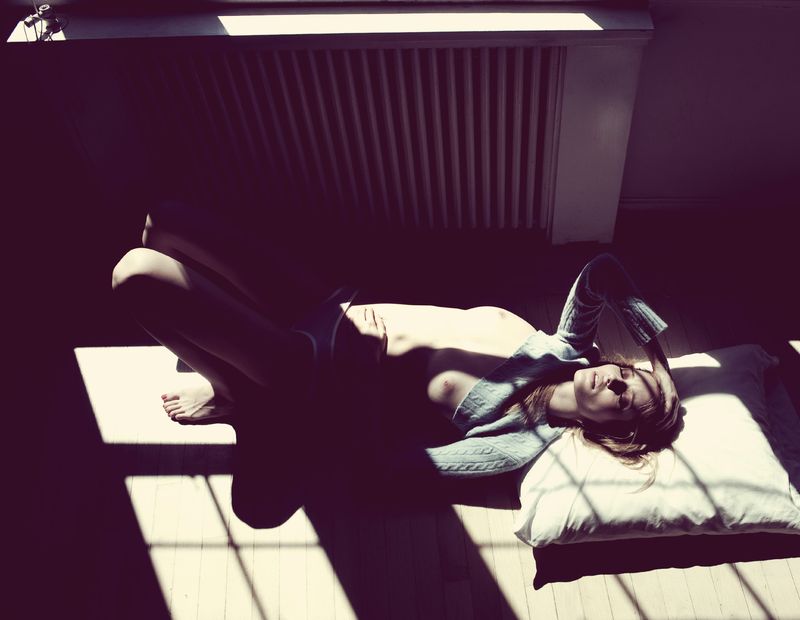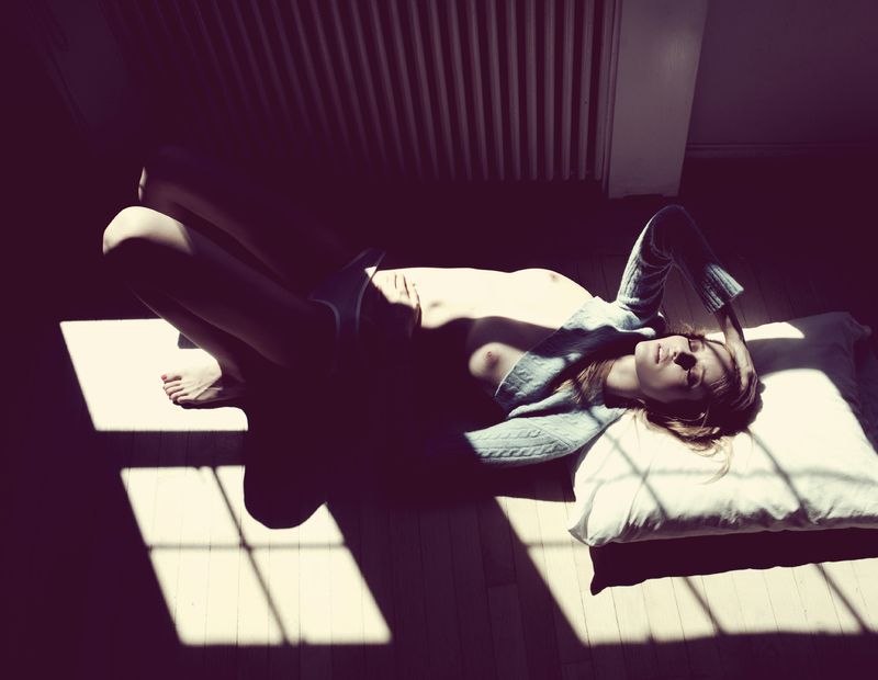 Бедняжка,еле с кровати встала после вчерашнего.Преподнесли как позирование.