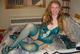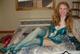 блондинка позирует очаровывая нас в платье, в нижнем белье и без, стоя сидя на кровате, интим место с волосиками грудь хорошего размера