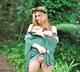 Хороша сисястая принцесса на природе с венком на голове и бамбуковой палкой в руке!