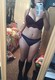 Молодая селфийка с ядреноей фигуркой снимает отражение собственного стрипа в зеркале.