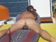 милашка принимает солнечные ванны на палубе яхты демонстрируя себя и свою попку и и киску на фотокамеру.