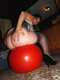 Дама с классной жопой позирует на красном мяче и демонстрирует свой попец