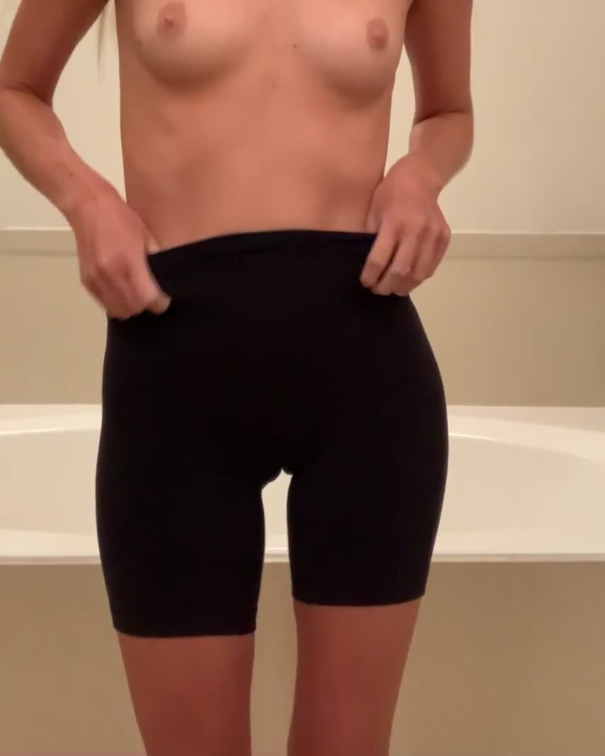 В велотрусах, но судя по ногам - явно не велосипедистка.))