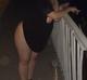Дамочка покинула подъезд и прогуливается.При этом попивает пиво, курит ну и засвечивает свои прелести.