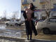 Барышня позирует, не стесняясь людей и не боясь холода