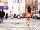 Бесстыдница гуляет, не стесняясь прохожих и показывая стройное красивое тело