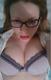 милая девчонка в очках показывает свои большие сиськи