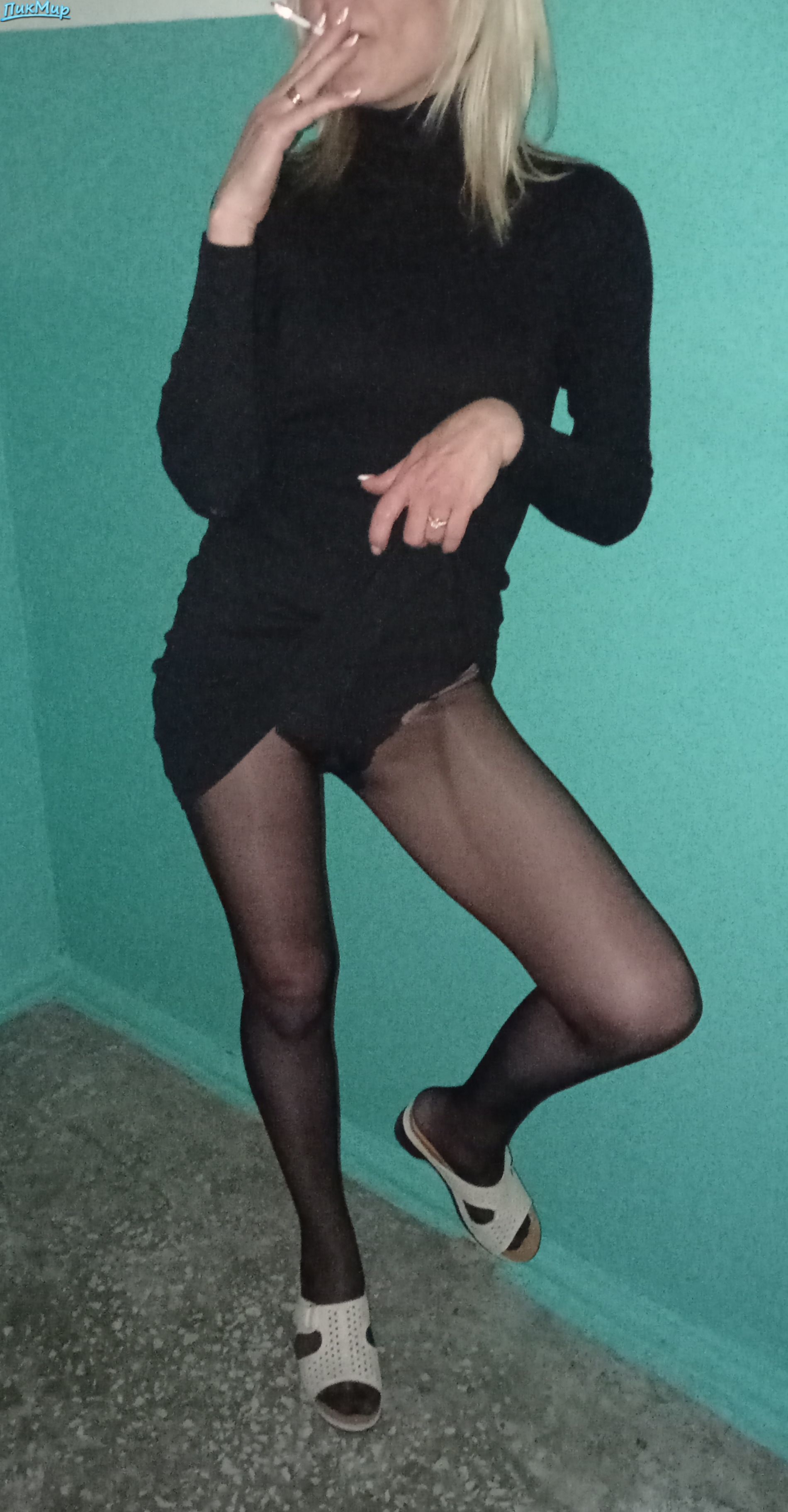 Неплохо она посветила своей вульвой в подъезде приспустив с себя колготки!