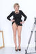 Симпатичная дама в зрелом возрасте в черном платье мило показала свою попку и шикарные грудки.