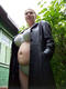 Аппетитная пышка позирует на загородном участке несмотря на не самую летнюю погоду