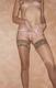 Она безупречно выглядет в чулочках и розовых плавочках.
