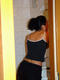 Стройная девочка наносит макияж сексуально.