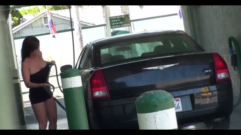 С королевы авто мойки стянули платье оголив ее дойки