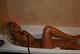 Позирует в ванной и на кровати