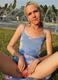 Стройная блондиночка не утруждает себя ношением белья в тёплое время года... и приятно, не жарко, да и спутника можно хорошенько завести, что обеспечит хороший домашний перепихон)
