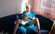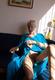 Зрелая дама в голубом платье постепенно обнажилась и показала свои прелести.