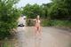 Девушка позирует на просёлочной дороге, на южном берегу Крыма.Умопомрочительная фигурка,стоячие сисички,круглая попка, и волосатенькая писька.