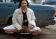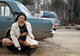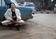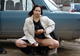 Развратница позирует возле машины, развлекаясь с любимой игрушкой
